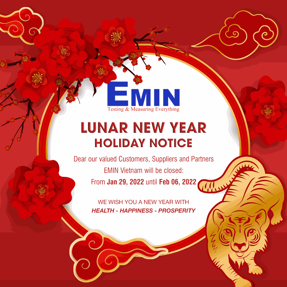 For your convenience, EMIN GROUP would like to announce the schedule of the 2022 Lunar New Year holiday as follows: