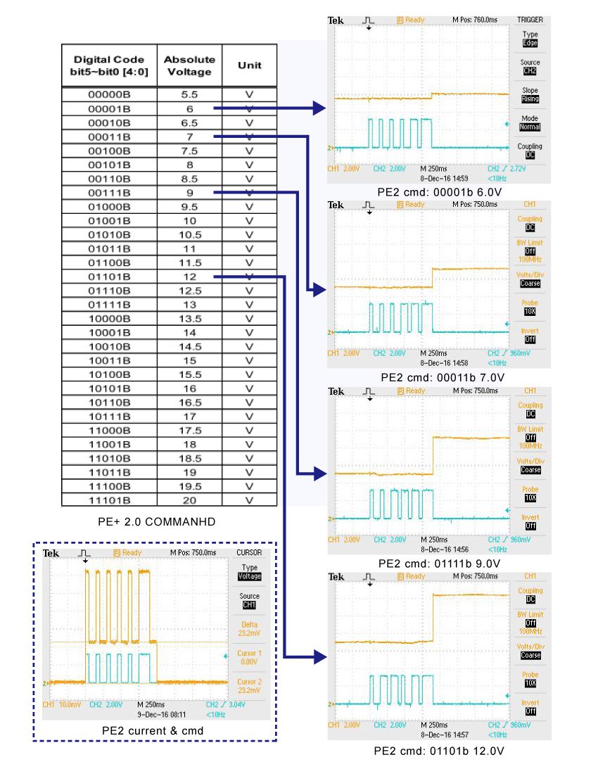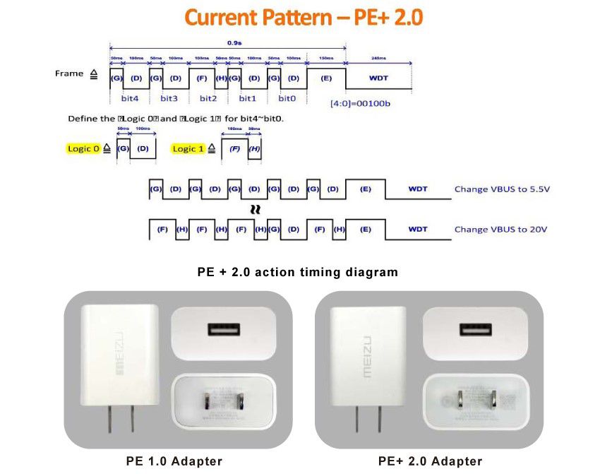 This protocol has been used by SONY, Lenovo, Gionee, Meizu and other PC brands. The features of Pump Express allow the charger to determine the initial voltage required for charging based on the current drawn. The pulse current command from the PMIC in the phone or device is sent to the charger via USB Vbus. The charger adjusts the output voltage according to this instruction.