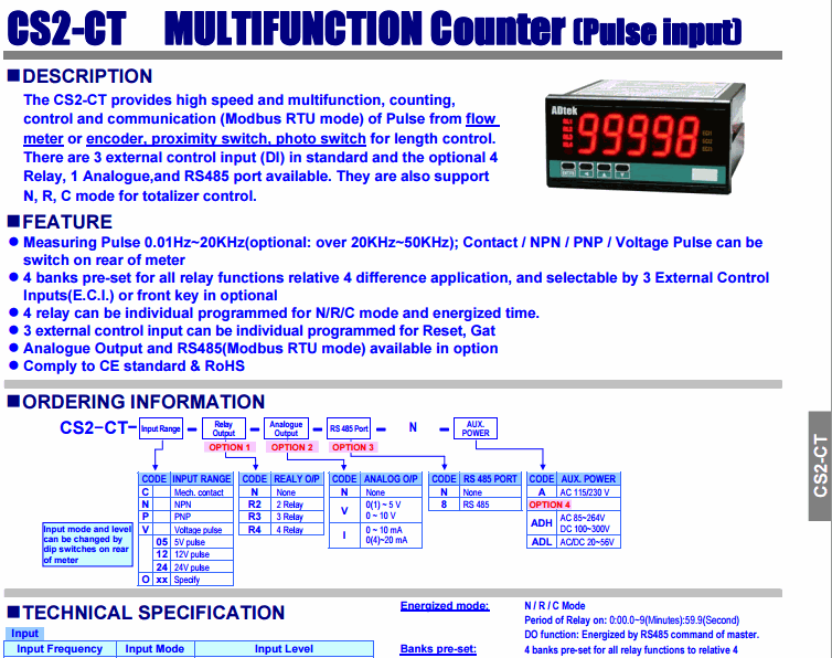Adtek CS2-CT MULTIFUNCTION Counter (Pulse input) (0.01Hz~20KHz) | EMIN.CO.TH