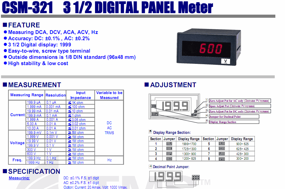 Adtek CSM-321 3 1/2 Digital Panel Multimeter (AC/DC/Hz) | EMIN.CO.TH