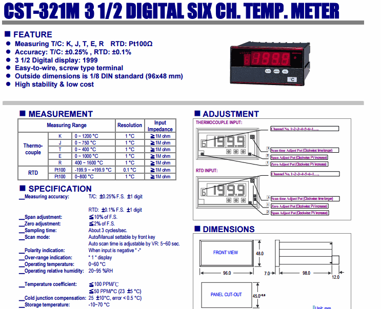 Adtek CST-321M 3 1/2 DIGITAL SIX CH. TEMP. METER (1200°C, 6 channels) | EMIN.CO.TH