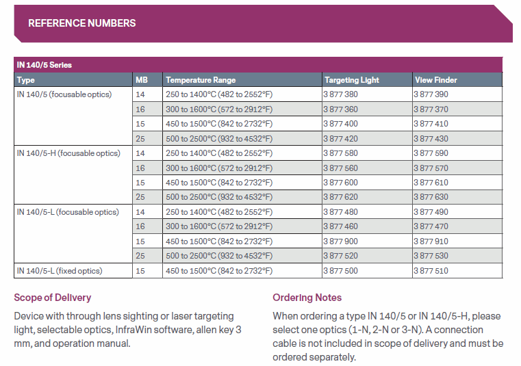 - Scope of Delivery: Device with through lens sighting or laser targeting light, selectable optics, InfraWin software, allen key 3 mm, and operation manual.