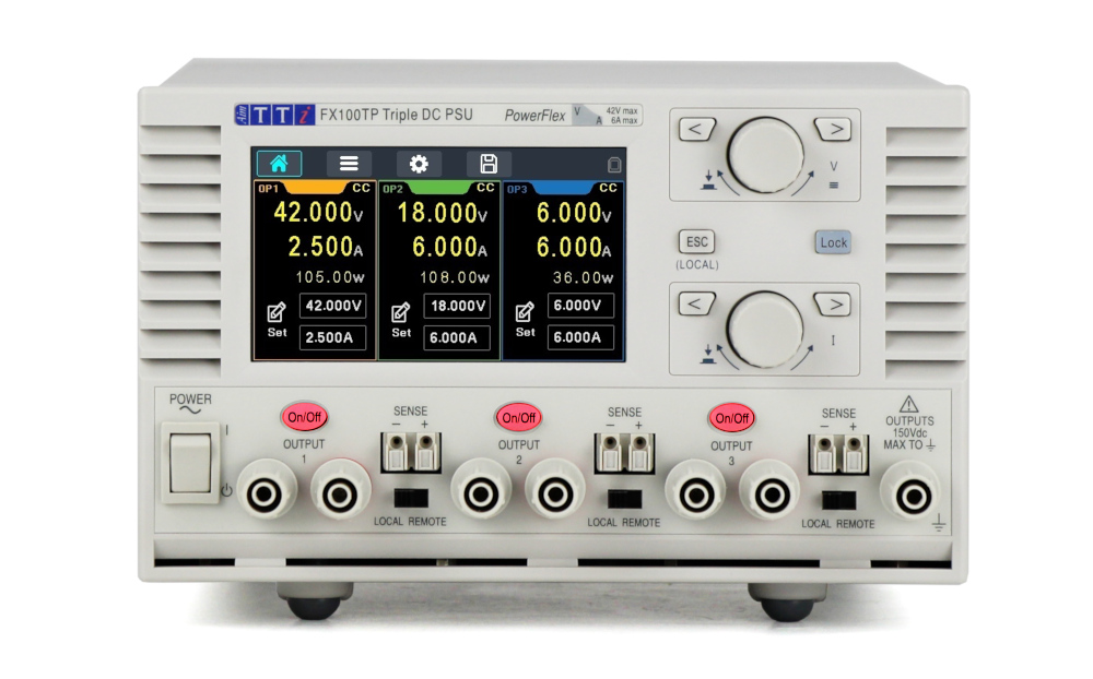 Direct entry of output voltage or current via touch control with on screen numeric keypad.