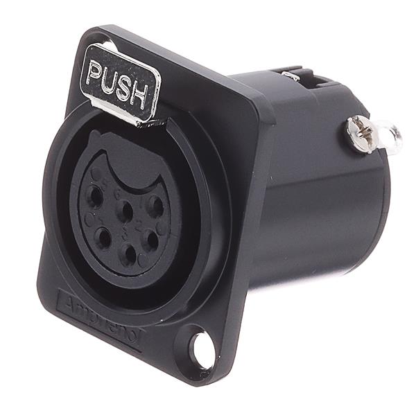 Amphenol Audio AC6AFDZB Connectors 6 Pole XLR Female Chassis Mount D Type Machined Contacts Black Finish | EMIN.CO.TH