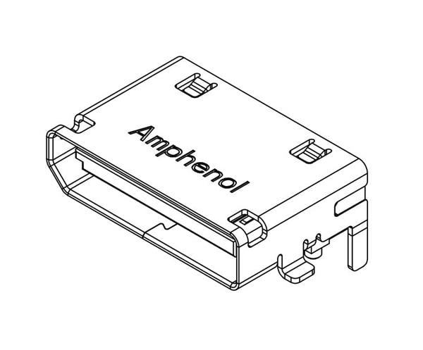 Amphenol Commercial Products G14A42121512HR Connectors OCulink, Receptacle, 0.5mm pitch, 4X, R/A SMT with shell leg SMT + Dip type, 30U" gold plating, LCP, black, T&R packing