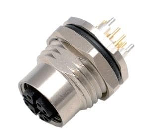 Amphenol Industrial HDM12RF08ASTMC Straight MaxM12, Female Panel Jam Nut, 8 female socket contacts, A code, crimp contacts, without dust cap, RoHS compliant