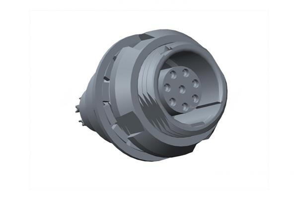 Amphenol LTW FLBC-08EEFS-JCP-001 Connectors FLOS, B Series C Size, Metal, 5A, 08 pins, Female Connector, Female Contact, Circular, Push Pull, Solder, Receptacle, Front Fastened, Panel Thickness 6, IP50