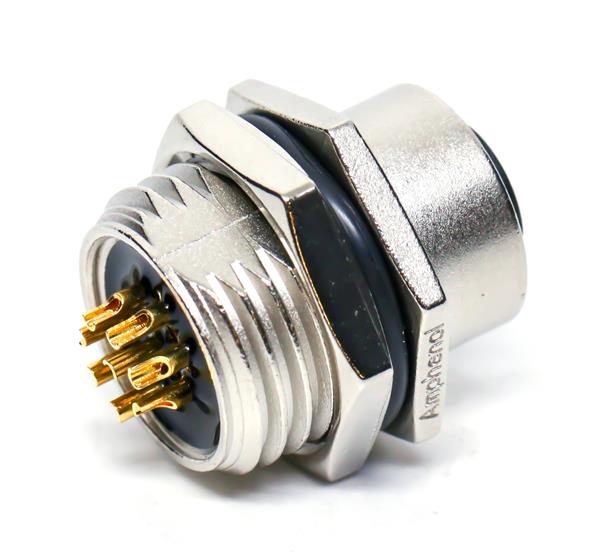 Amphenol LTW M12A-08PFFS-SH8002 Circular Metric Connectors M12 Circular Metric Connector, A Code, Metal, 2A, 08 pins, Female Connector, Female Contact, Hexagonal, M16*1.5, Screw Thread, Solder, Receptacle, Rear Fastened, Panel Thickness 4.5, IP68 / IP69K