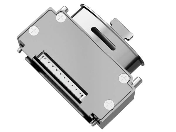 Amphenol Positronic MCD50000ELNE30/AA Lightweight Aluminum Backshell MCD, D-Sub Backshell, Machined Aluminum, Top Entry with Tie Wrap, UNC 4-40 captive rotating male jackscrews, RoHS, Size 5