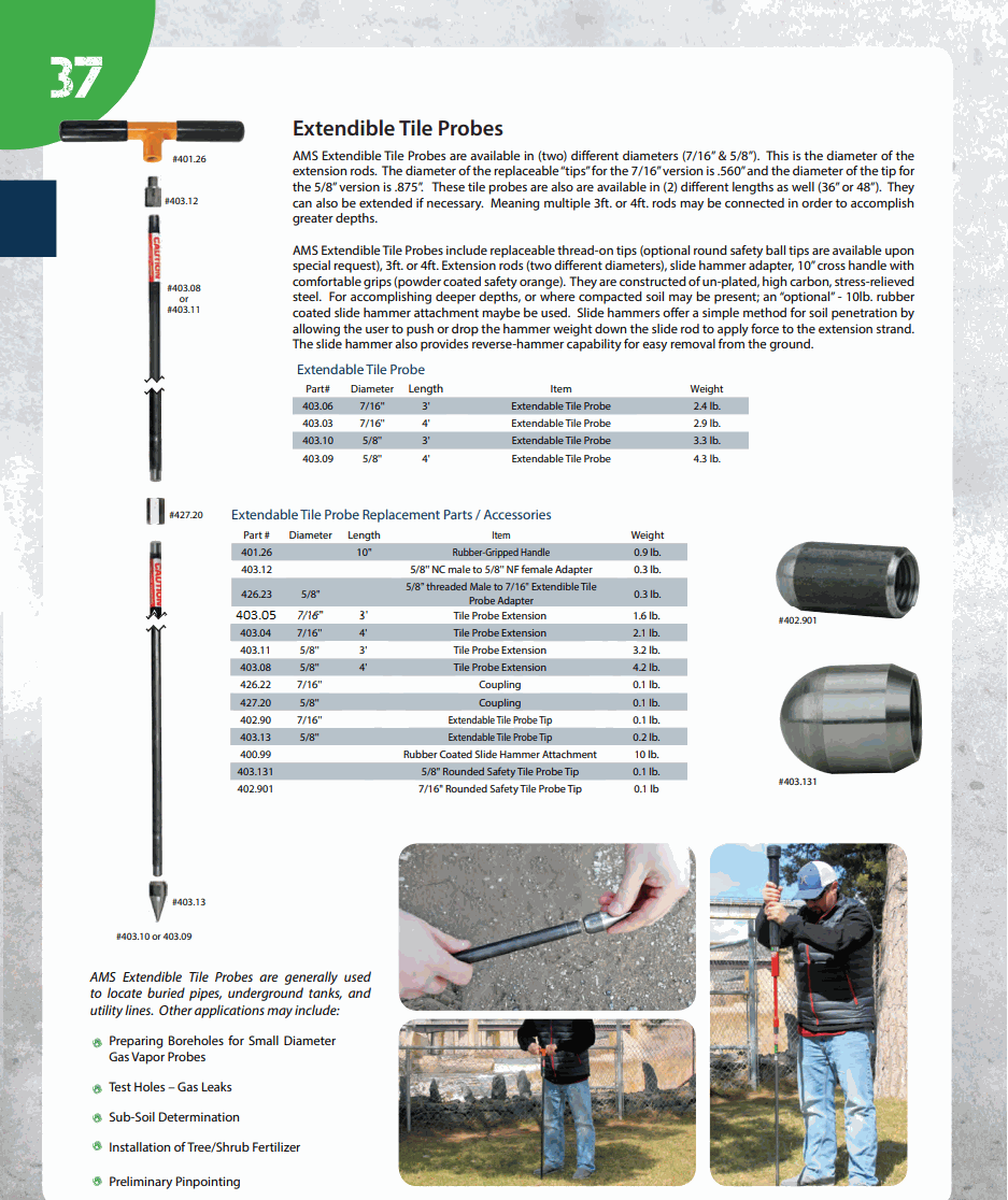 AMS 403.10 5/8" X 3' Extendible Tile Probe Complete | EMIN.CO.TH