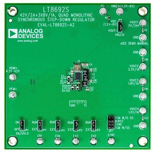 Analog Devices EVAL-LT8692S-AZ Voltage Regulator - Switching Regulator 42V/2A + 3 8V/1A, 2MHz Quad Monolithic Synchronous Step-Down Regulator