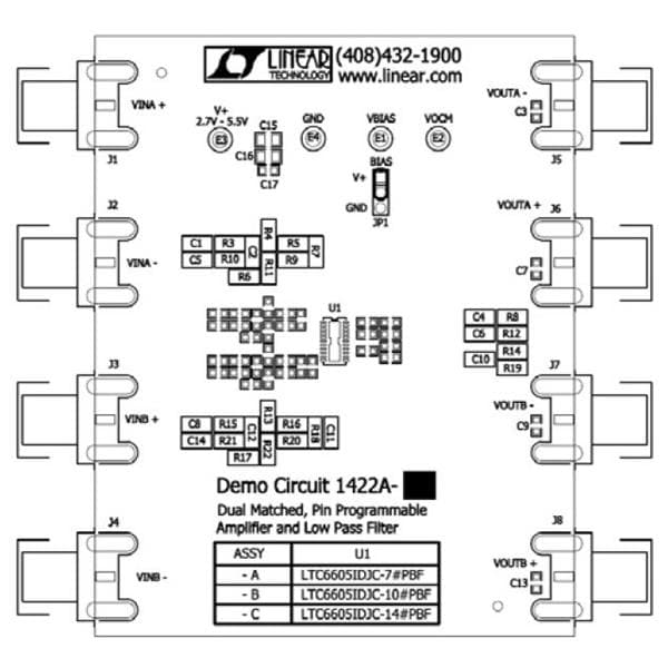 Analog Devices DC1422A-C Differential Amplifiers LTC6605-14 - Dual Matched 14 MHz Low Noi | EMIN.CO.TH