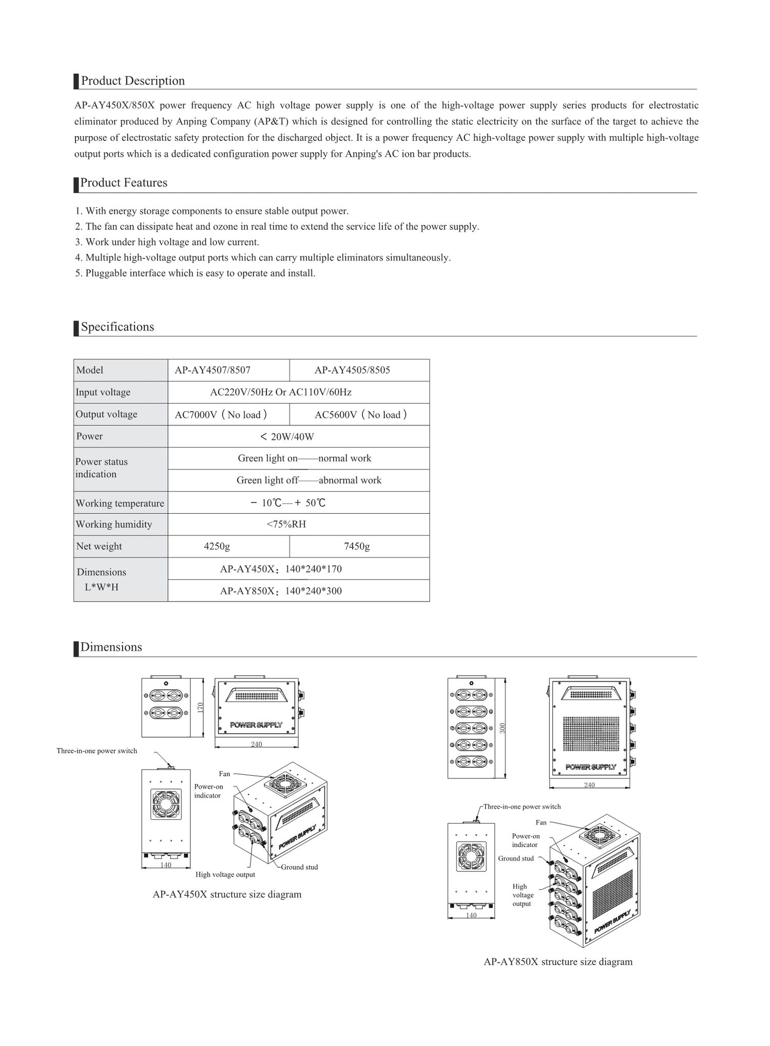 AP&T AP-AY4505 High voltage anti static electrostatic discharge eliminator power supply | EMIN.CO.TH