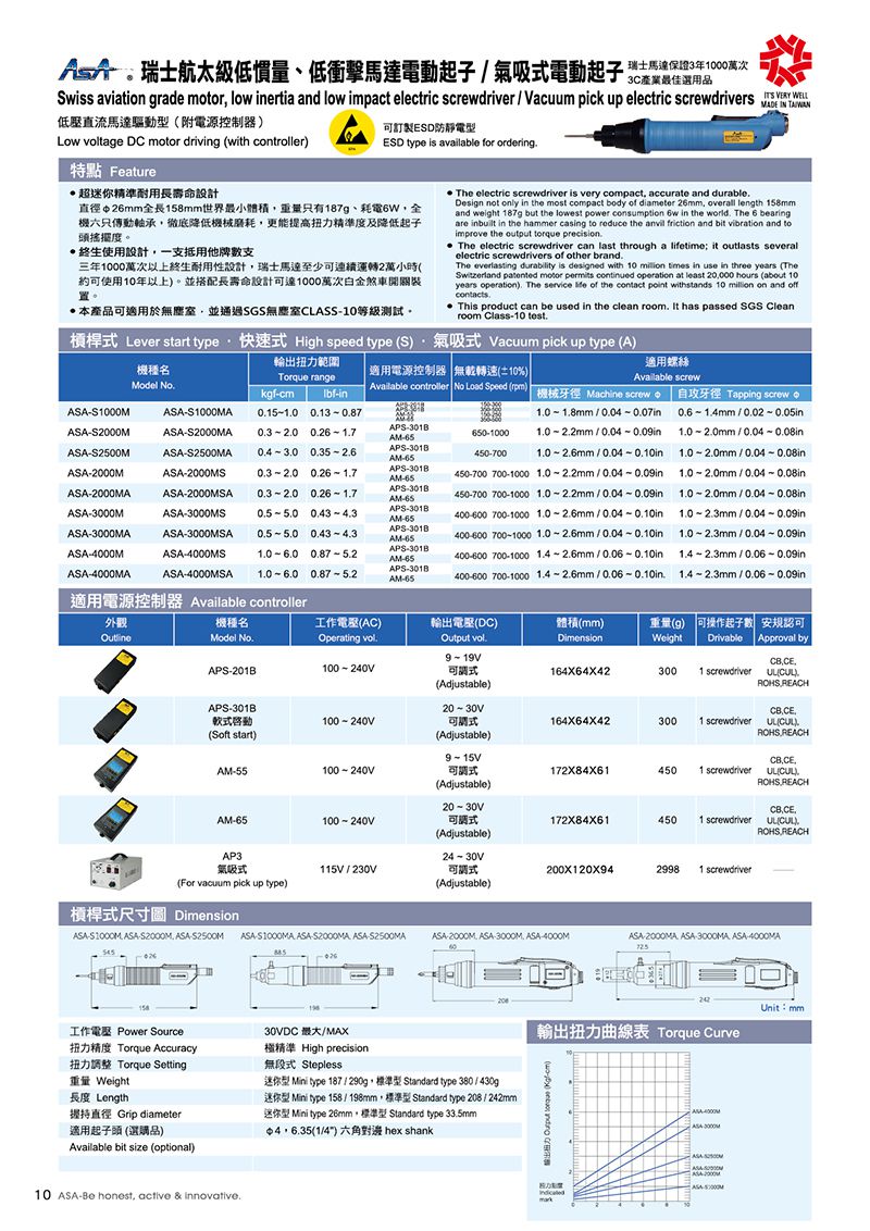 ASA ASA-2000MS Full-auto shut off electric screwdriver - High Speed Type (0.3-2.0 kgf-cm, 1/4''Hex shank) | EMIN.CO.TH