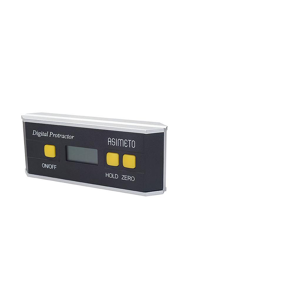 This protractor provides an immediate digital reading of any angle in a full circle with 0°-90°-0°-90°-0° readings. The machined Aluminum frame is rigid and light with a precise platform that allows the sensor and its microprocessor circuit to provide high accuracy throughout the entire 360° range