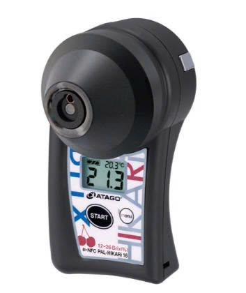 The Brix (sugar level) can be measured by placing the fruit on the sample stage with no need of cutting or squeezing. It requires no more cumbersome wiping and cleansing after each measurement.