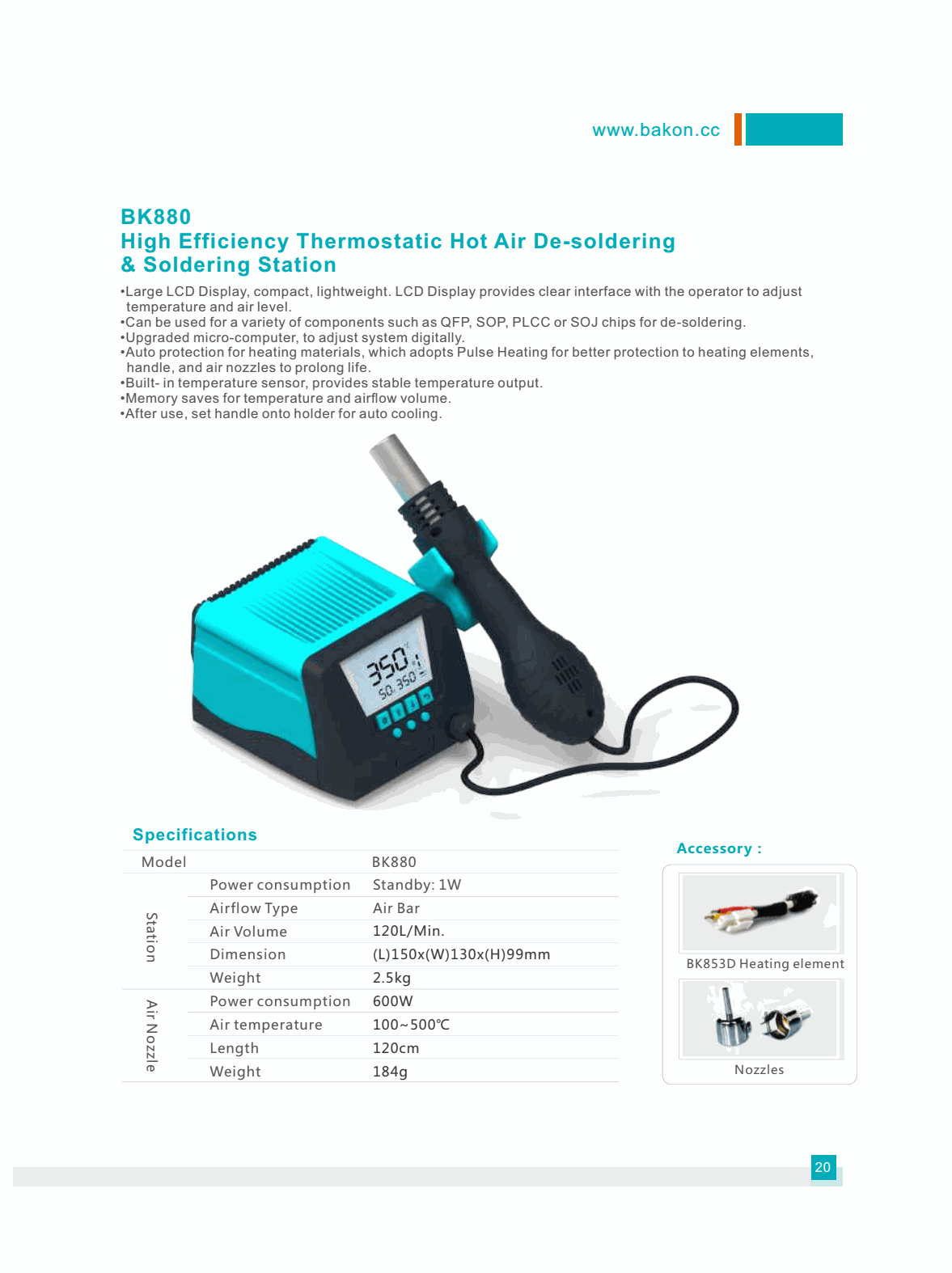Bakon BK880 High Efficiency Thermostatic Hot Air De-soldering & Soldering Station (600W) | EMIN.CO.TH