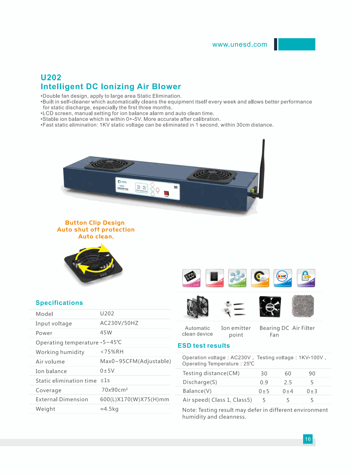 Bakon U202 Intelligent DC Ionizing Air Blower (45W) | EMIN.CO.TH