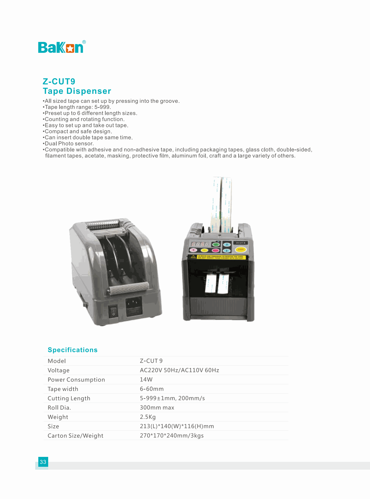 Bakon Z-CUT 9 Tape Dispenser (5-999±1mm) | EMIN.CO.TH
