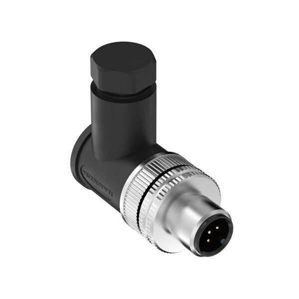 Banner Engineering BFW-M12M5A-6X M12 Field Wireable Connector Field Wireable: M12; 5-pin Right Angle Male; 22 AWG 4-6 mm Cable Range; Screw Terminal; PA+GF Black Body; Aluminum Alloy Coupling Nut