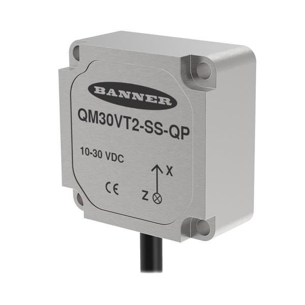 Banner Engineering QM30VT2-SS-QP Vibration and Temperature Sensors Vibration and Temperature Sensor; Modbus Slave Device via RS-485; 150 mm (6 in) M12 Pigtail QD; Stainless Steel IP69K Housing