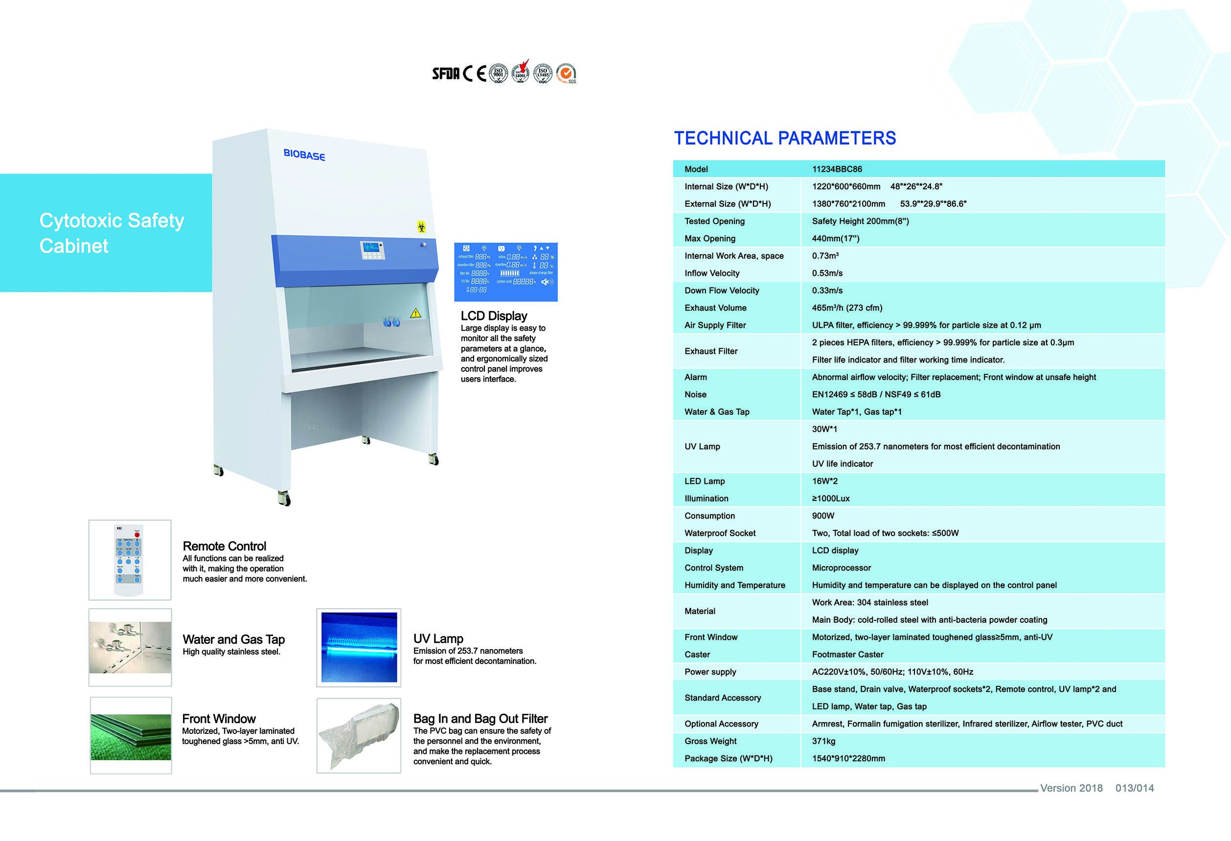 UV lamp: 18 W*1; Emission of 253.7nanometers for most efficient decontamination; UV life indicator