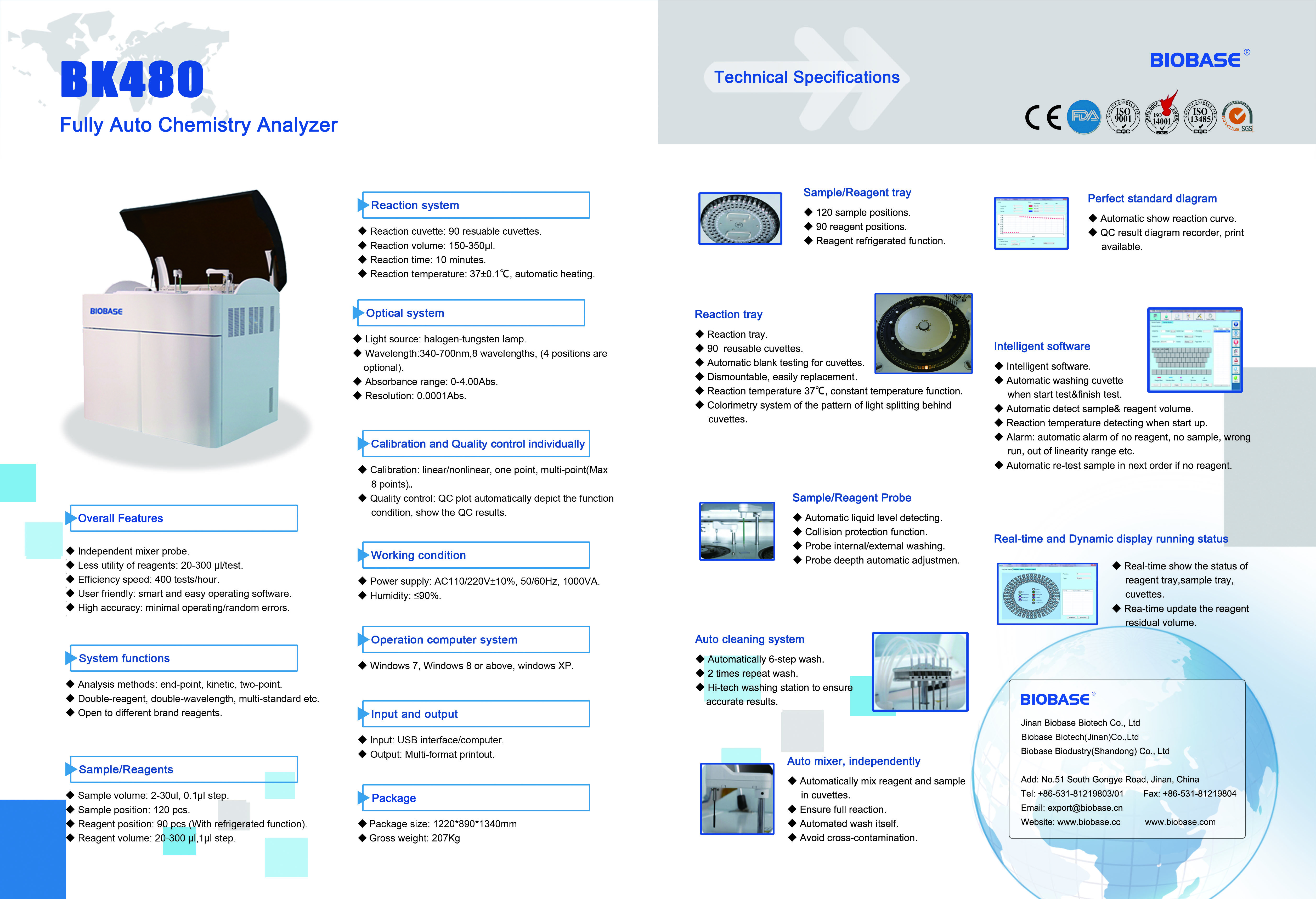 Features: 120 Sample positions; 90 Reagent positions; 90 Reaction cuvettes; 400 Tests /Hour