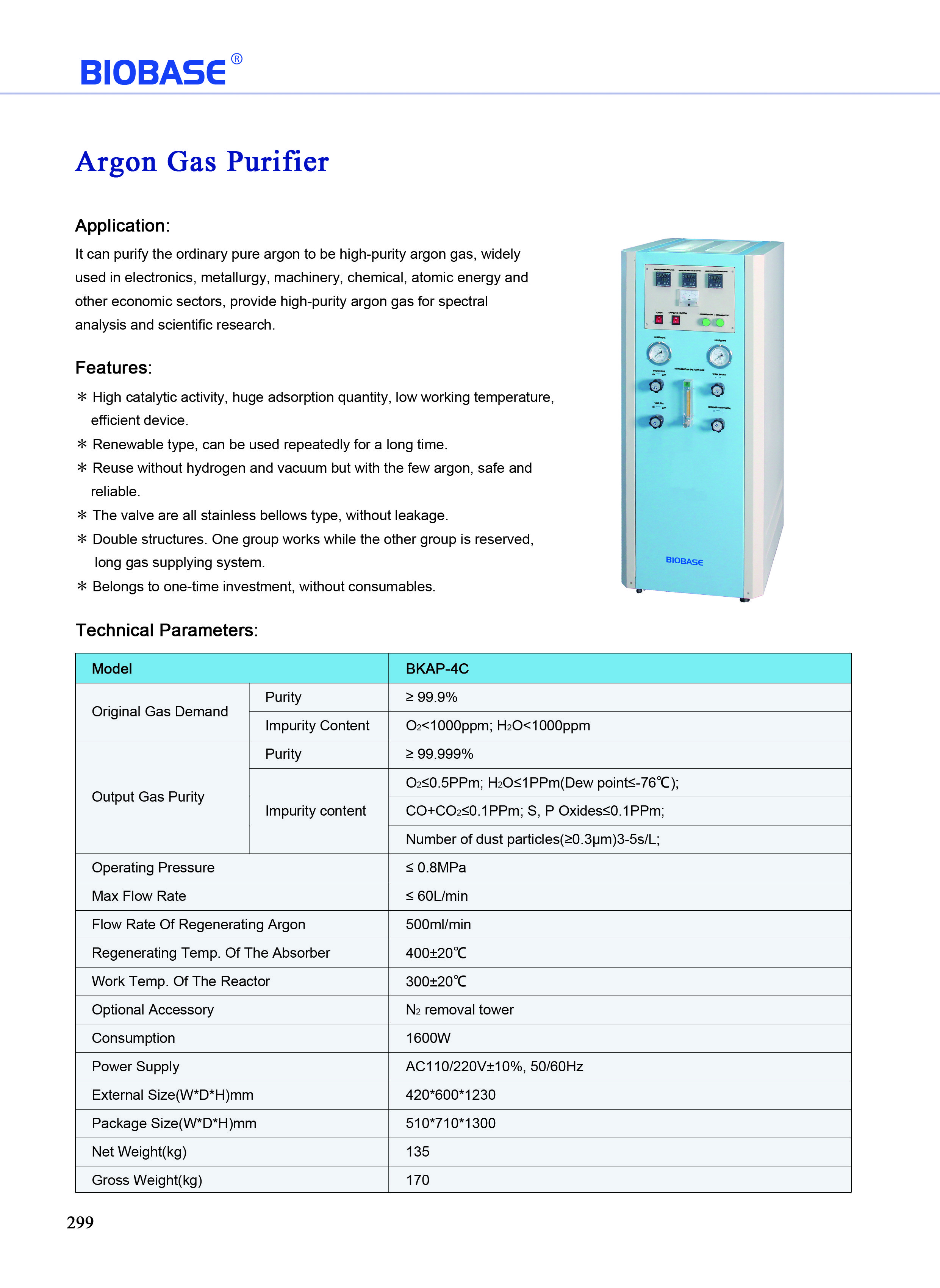 Output Gas Purity: Purity: ≥ 99.999%; Impurity content: O2≤0.5PPm;H2O≤1PPm(Dew point≤-76℃); CO+CO2≤0.1PPm;S,P Oxides≤0.1PPm; Number of dust particles(≥0.3μm)3-5s/L;