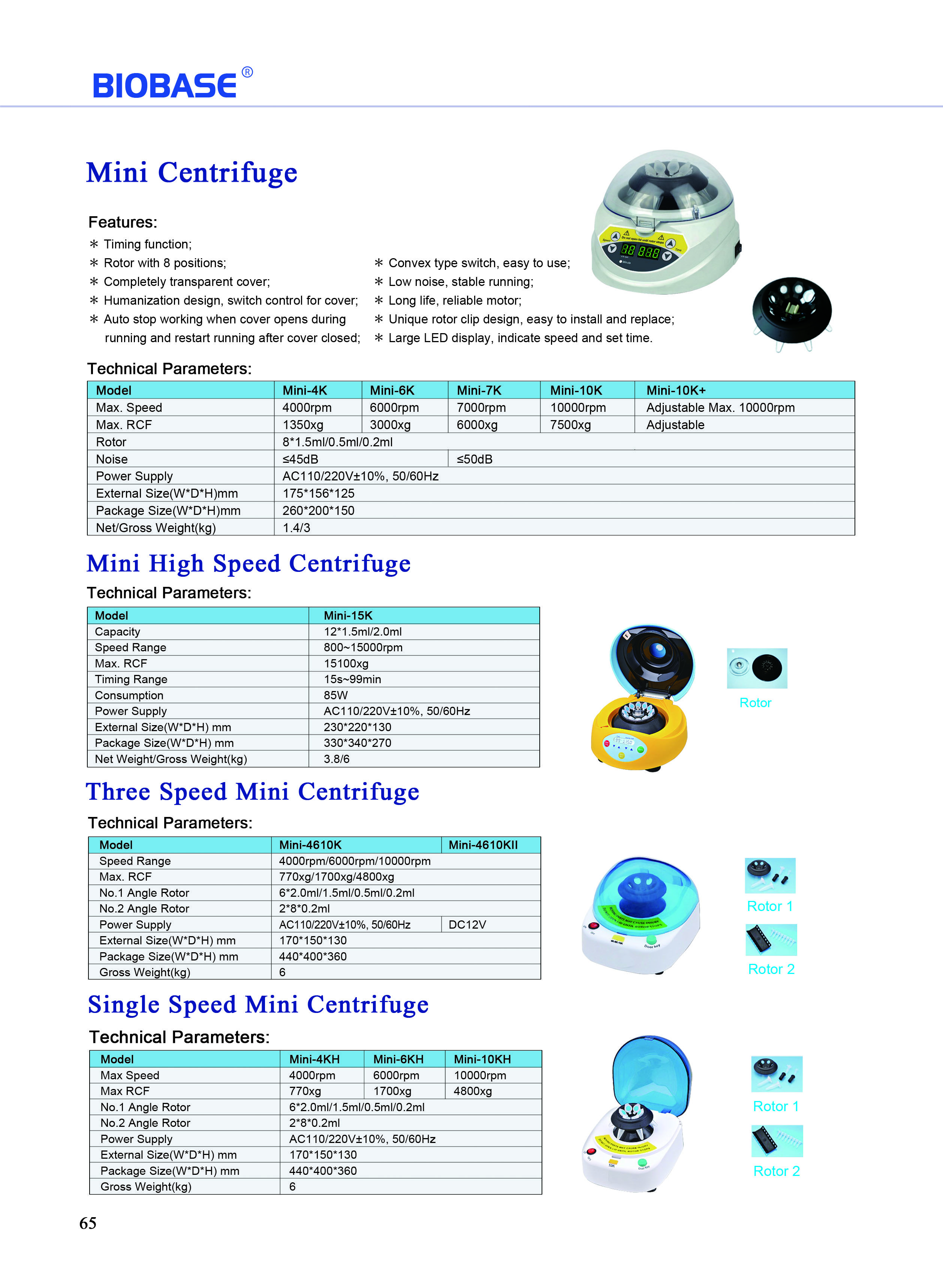 Rotor: 8*1.5ml/0.5ml/0.2ml