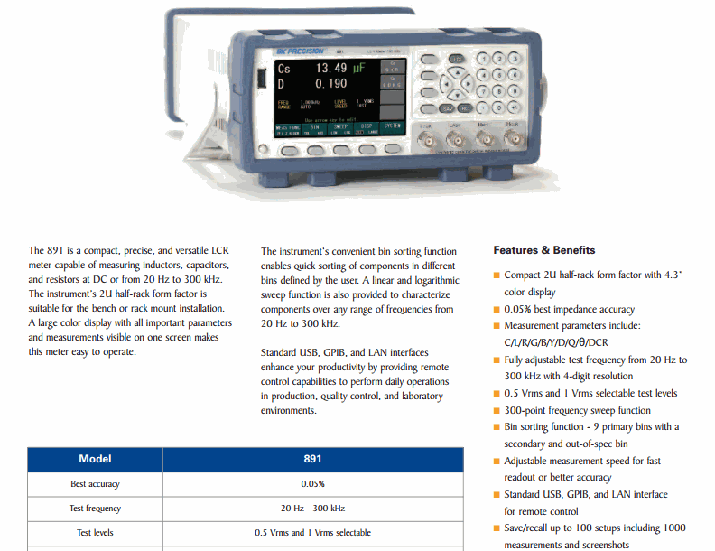 Measurement parameters C/L/R/G/B/Y/D/Q/θ/DCR