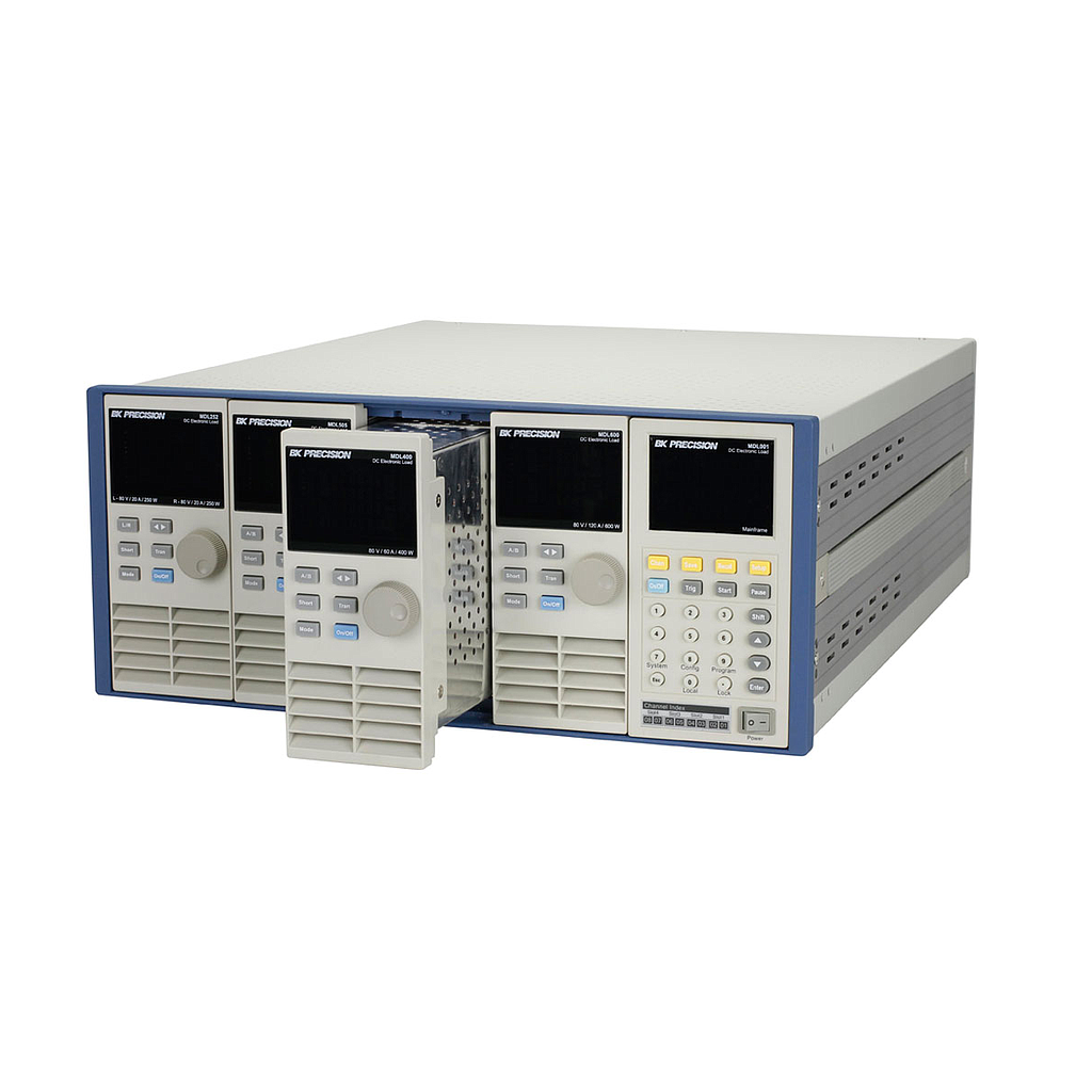 The MDL Series is a multi-channel modular programmable electronic load system. Six different modules of programmable DC loads ranging in power from 200 W to 600 W provide users the flexibility to test a wide range of power sources from multi-output AC/DC power supplies to batteries, fuel cells, and photovoltaic arrays.