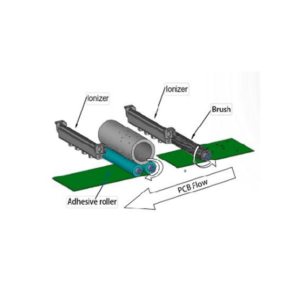 This unit can remove glass fiber, dust particles, etc. on top surface of PCB before solder paste printing, and improve production yield. Especially suitable for PCB which is mounted extremely small components.
