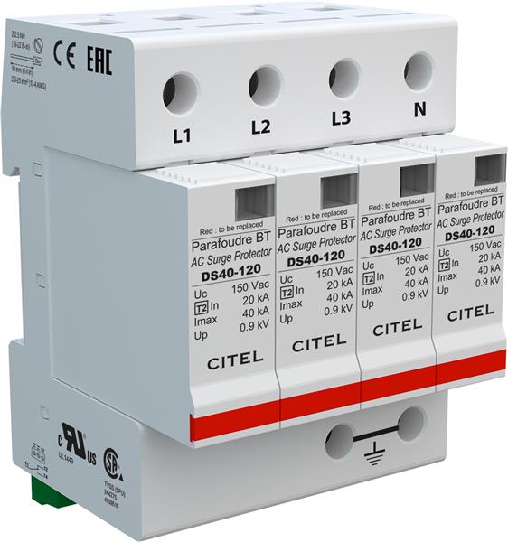 CITEL DS44S-120 DIN Rail AC Power Surge Suppressor Din Rail AC Power Surge Suppressor, 40kA max, 240/120V Split Phase, 4P | EMIN.CO.TH