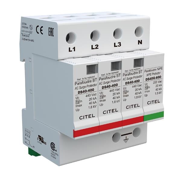 CITEL DS44S-400/G DIN Rail AC Power Surge Suppressor Din Rail AC Power Surge Suppressor, 40kA max, 415/240V Split Phase, 3P+GSG | EMIN.CO.TH