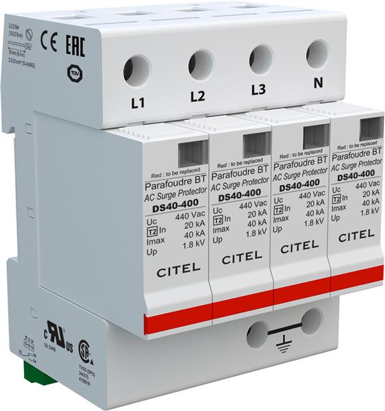 CITEL DS44S-400 AC Power Din Rail AC Power Surge Suppressor, 40kA max, 415/240V Split Phase, 4P | EMIN.CO.TH