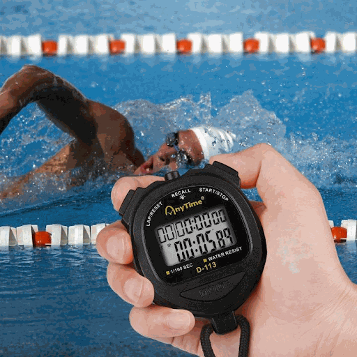 In swimming, stopwatches are used to measure performance for distances of 25 50 100 200m, helping evaluate swimmers’ speed and progress. They also support endurance tests such as 10×50m or 5×100m, recording changes in speed across repetitions. In addition, the stopwatch helps assess start reaction time and efficiency when turning, thereby optimizing competition technique.