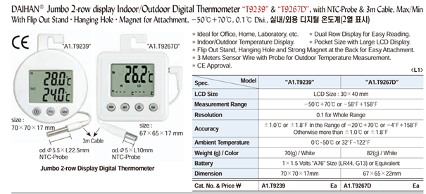 DaiHan A1.T9267D Jumbo 2-row display Indoor/Outdoor Digital Thermometer | EMIN.CO.TH