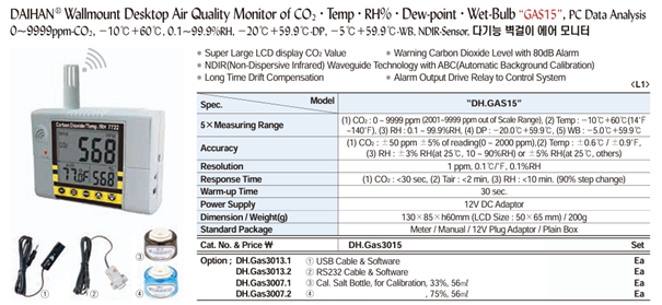 (1) CO2 : 0 ~ 9999 ppm (2001~9999 ppm out of Scale Range).