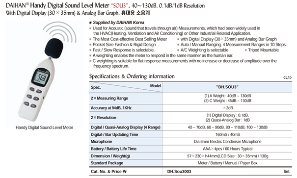 (1) A Weight : 40dB ~ 130dB