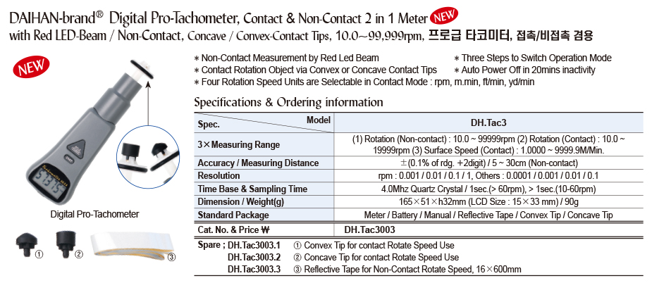 DaiHan DH.Tac3003 Digital Pro-Tachometer (Combo Tachometer) | EMIN.CO.TH