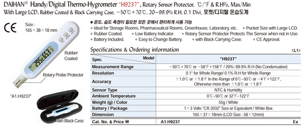DaiHan H9237 Handy/Digital Thermo-Hygrometer | EMIN.CO.TH