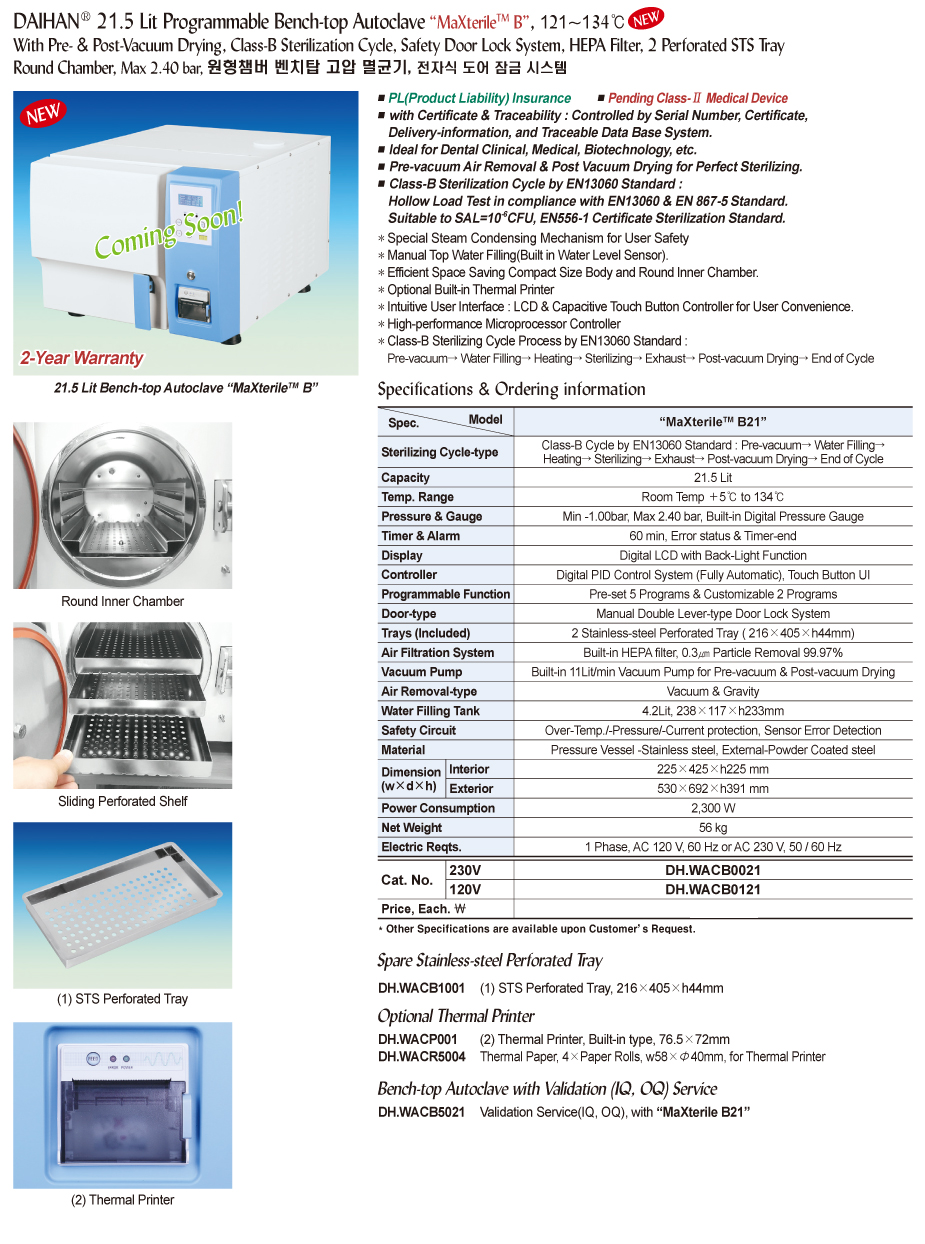DaiHan MaXterile B21 Programmable Bench-top Autoclave (21.5 Lit, 5 ~ 134℃) | EMIN.CO.TH