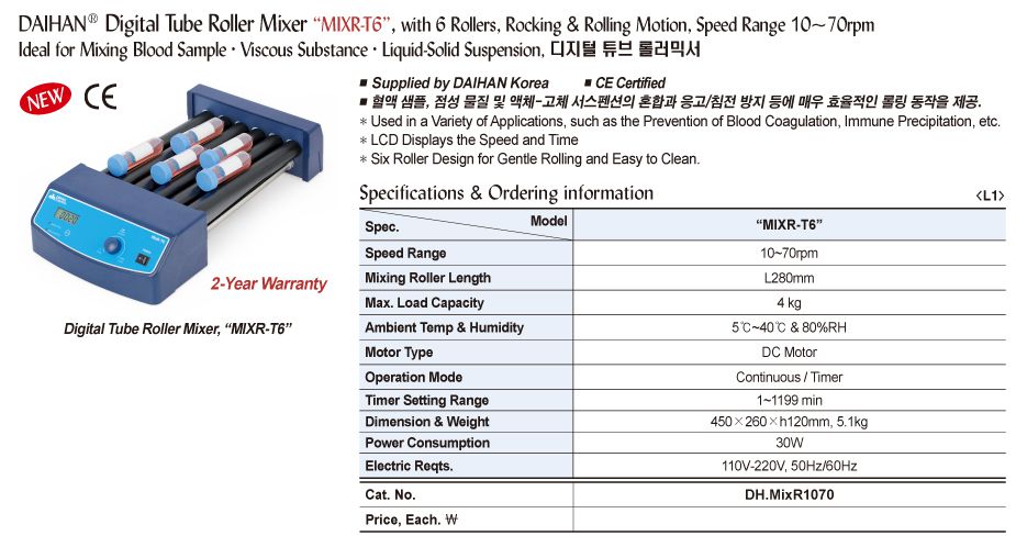 DaiHan MIXR-T6 Hematology Tube Mixer (10~70rpm) | EMIN.CO.TH