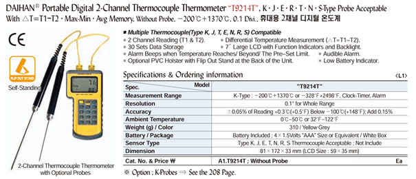 DaiHan T9214T Portable Digital 2-Channel Thermocouple Thermometer | EMIN.CO.TH