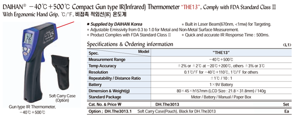 DaiHan THE13 -40℃+500℃ Compact Gun type IR(Infrared) Thermometer | EMIN.CO.TH