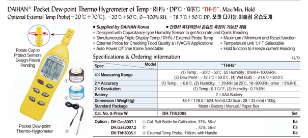 DaiHan THH5 Pocket Dew-point Thermo-Hygrometer (Temp·RH%·DP℃·WB℃) | EMIN.CO.TH