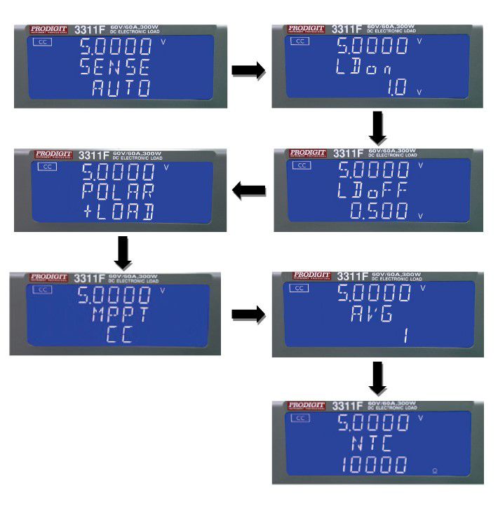 5. Set Config. NTC, 10K ohm, CV 7V, Load ON, (Average efficiency test & ripple test) store to Memory 5.