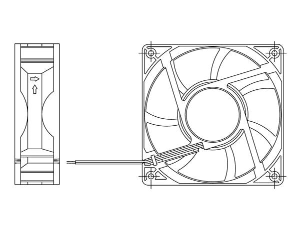 Delta Electronics, Inc. AFB1224SHE-T500 Tubeaxial Fan, 120x38mm, 24VDC, 151 .85CFM, 12W, Ball, Leads, Lock Rotor Sensor, IP55 | EMIN.CO.TH