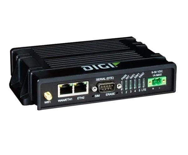 DIGI IX20-WAG4 LTE Routers Digi IX20 - LTE, CAT-4, 3G/2G fallback, Dual Ethernet, RS-232, Wi-Fi, with Accessories: DIN rail clip, power supply, (2) cellular antenna, Wi-Fi antenna, and Ethernet cable