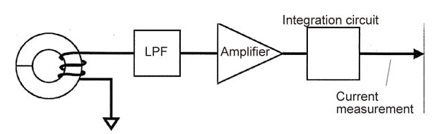 - Rogowski principle: Differentiates the output voltage waveforms at the ends of the coil, then integrates these waveforms to calculate the current value. The coreless coil reduces the size and increases the flexibility of the clamp meter.